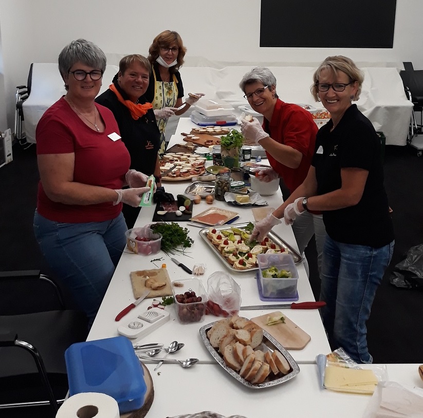 Es tut gut sich nach der langen "Corona-Pause" wieder einmal zu treffen und dabei auch noch bei einer so "schönen Arbeit". Darüber freuten sich die Frauen ebenso wie auch die Gäste, die die vielen tollen und kreativen Snacks genossen. |