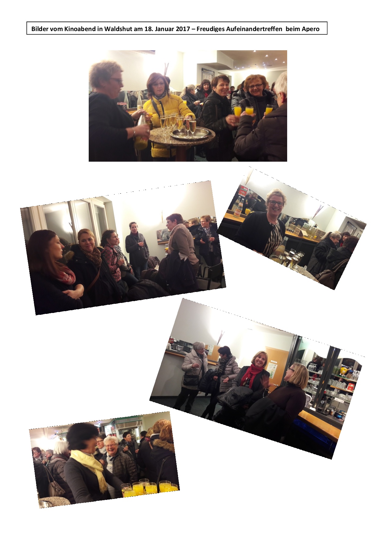 Einen tollen Kinobend verbrachten 130 Landfrauen vom Bezirk Waldshut im "Albrecht-Kino" in Waldshut am Mittwoch, 18. Januar 2017. Begrüsst wurden sie von der Vorsitzenden Elisabeth Etspüler und ihrem Vorstandsteam mit einem Glas Sekt, was die eh schon gute Stimmung noch mehr anheizte. Mit dem Film "Monsieur Claude und seine Töchter" hatte man ins Schwarze getroffen, denn es gab nicht nur während des Films viel Gelächter sondern auch noch auf dem Heimweg.