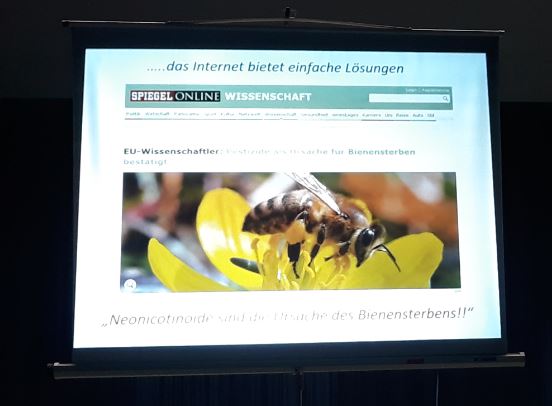 Der Vortrag von Herrn Dr. Klaus Wallner von der Universität in Hohenheim mit dem Titel "Bienen und Landwirtschaft" beleuchtete die Problematik bezüglich Rückgang der Bienen und die Zusammenhänge mit der Landwirtschaft. |