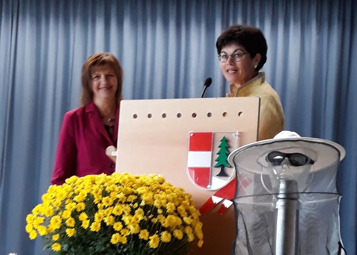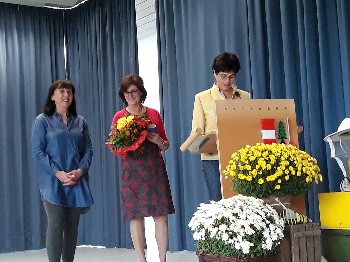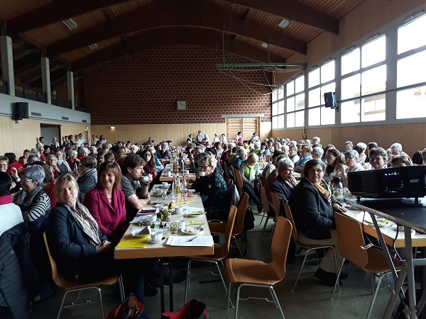 Beim Bezirkslandfrauentag 2018 konnte die Bezirksvorsitzende Elisabeth Etspüler sehr viele Gäste in der vollen Gemeindehalle in Remetschwiel begrüssen, wo sie von den Remetschwieler Landfrauen mit Kaffee und einem leckeren Kuchen-Buffet empfangen worden waren. Neben den Grussworten durch den Bürgermeisterstellvertreter Götte und der Gleichstellungsbeauftragten Anette Klaas, ging Rosa Karcher, Präsidentin des Landfrauenverbandes Südbaden, auf die für den Landfrauenverband wichtigen Themen ein. Mit einem schönen Blumenstrauss für sie wurde ihr grosses Engagement gewürdigt. |