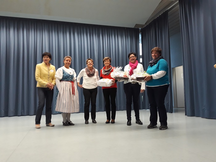 Zum Abschluss fanden sich die Remetschwieler Landfrauen auf der Bühne ein und wurden von Monika Zurin, stellvertretende Bezirksvorsitzende, mit einem Geschenkkorb bedankt. |