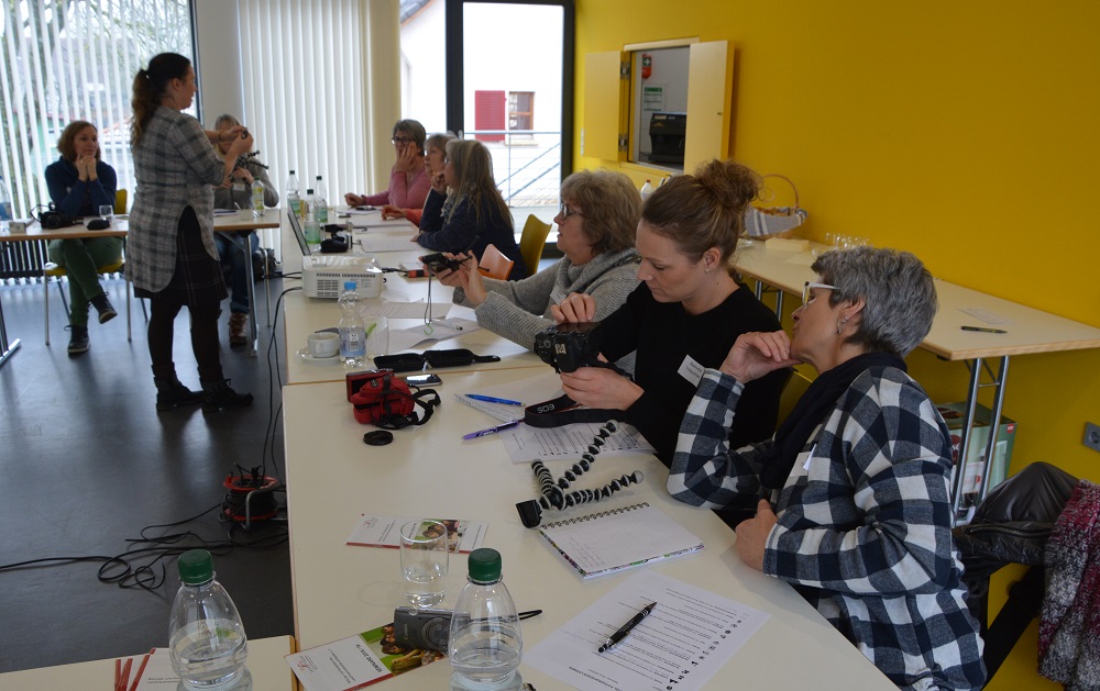 Im Seminar "Digitales Fotografieren" erklärte die Referentin Elena Goldbach (von Beruf freie Fotografin) hervorragend die technischen Möglichkeiten und Funktionen der digitalen Kompakt- bzw. Spiegelreflex-Kameras sowie die Nutzung der vielfältigen Motivprogramme. Sie gab viele Tipps was man beim Fotografieren besonders beachten muss, ob in Räumen oder draussen, ob am Tag oder in der Nacht oder auch die bestmögliche Einteilung eines Fotos. Ebenso zeigte sie welche neusten technischen Hilfsmittel es inzwischen auf dem "Foto-Markt" gibt.